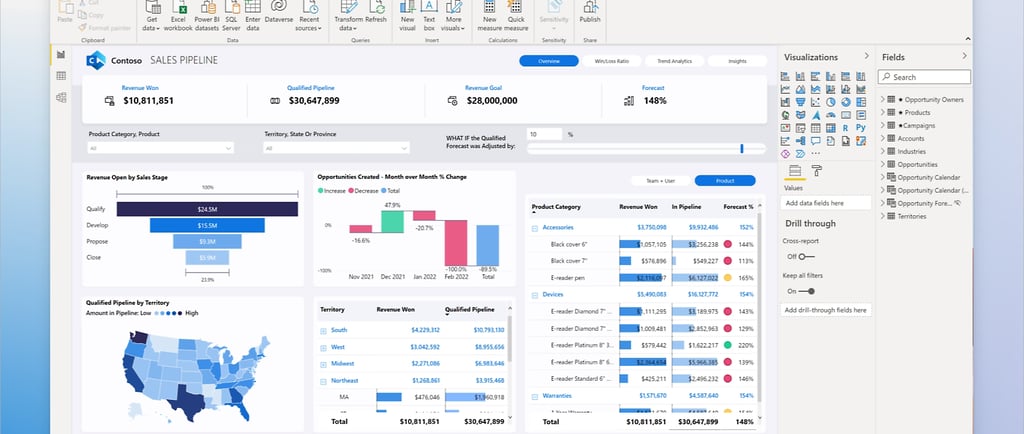 Take advantage of PowerBI's ability to bring together multiple different data sources, such as Excel spreadsheets, SharePoint lists, SQL databases and data from cloud systems with an API. The real power comes from linking data sources in your model and then manipulating them to allow you, or your users, to produce the reports you need.